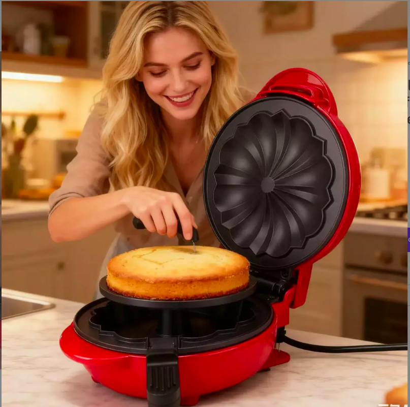 O sistema de aquecimento em ambos os lados garante um cozimento por igual, deixando o bolo macio por dentro e dourado por fora, sem esforço.